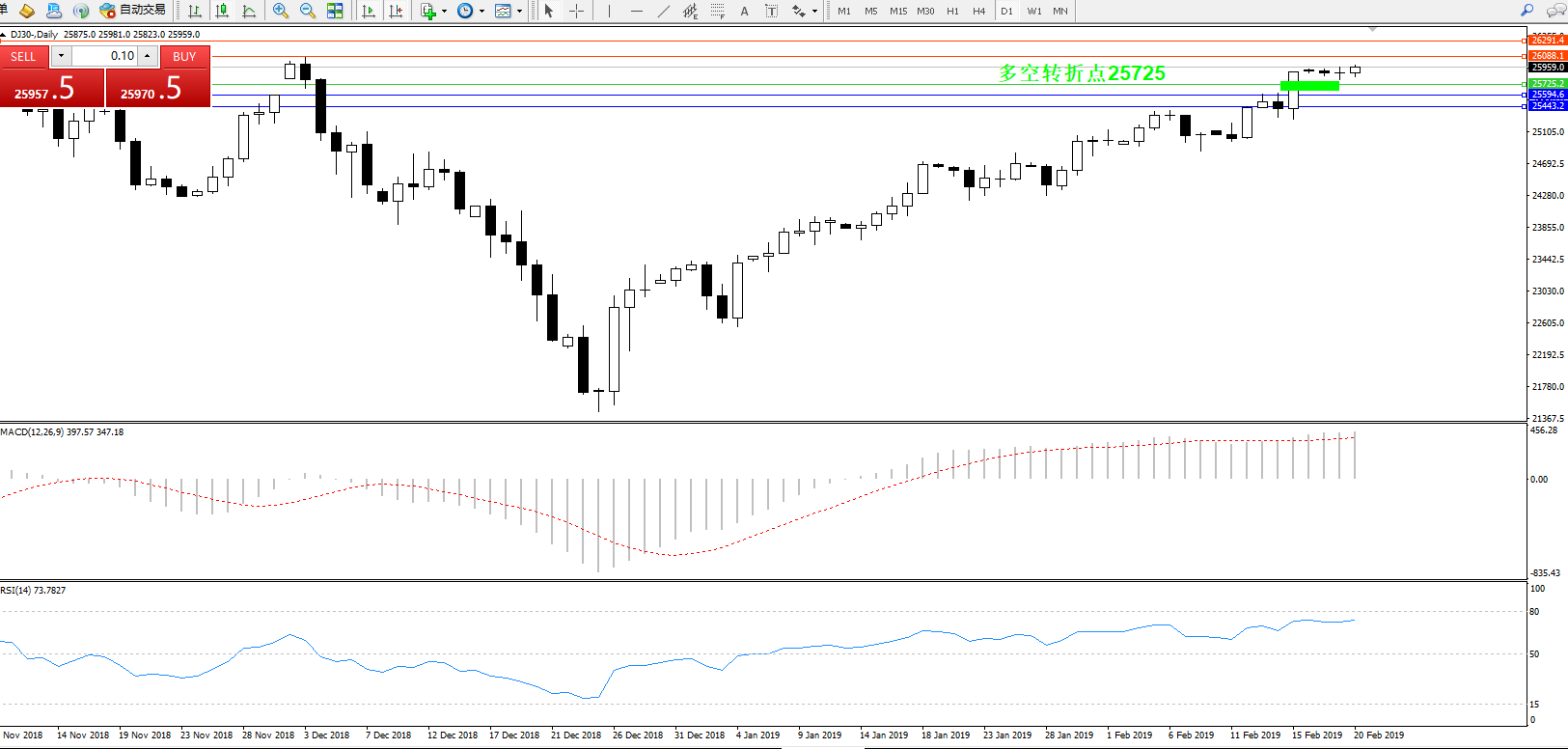 北京时间周四(2月21日)凌晨03:00,美联储公布1月货币政策会议纪要,美联储官员认为经济将持续扩张,就业市场强劲,通胀接近目标,几乎所有的委员希望在今年晚些时候结束缩表,几名委员认为如果经济处于正轨,2019年将会加息。美联储今年3月维持利率在2.25%-2.5%区间的概率维持在98.7%不变,降息概率维持在1.3%不变;今年6月维持利率在该区间的概率由96.7%下降至93.8%,加息和降息的概率分别由0%和3.2%升至0%和6.4%。道琼斯工业平均指数收涨63.12点,涨幅0.24%,报25954.44点。