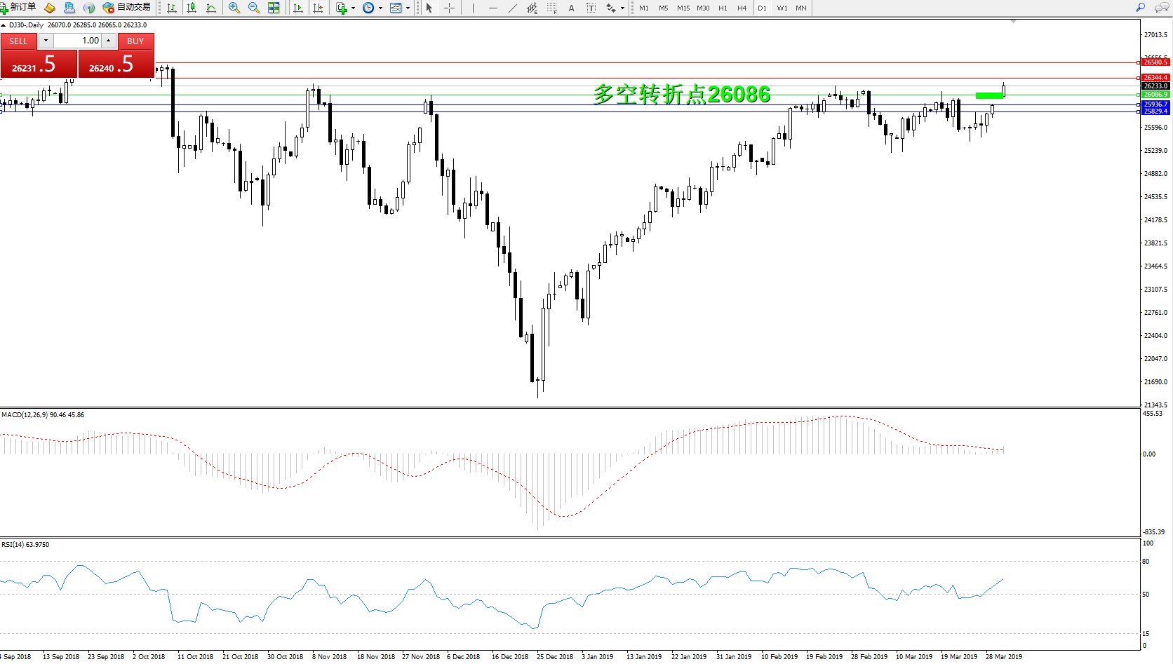 道琼斯工业平均指数收涨329.74点,涨幅1.27%,报26258.42点。工业、金融和基础材料等上涨的板块带领股指走高。中国和美国的经济数据向好,缓解了市场对全球经济增长的担忧;日内美国公布的多项经济数据好于预期,支撑了美元,美元指数近三周高位。高盛预计10年期美国国债收益率到年底将升至2.8%,低于此前预期。摩根士丹利预计10年期国债收益率到2019年底为2.25%,低于此前预测的2.35%。摩根大通现在预期10年期国债收益率到2019年底将为2.75%,同样低于此前预期。