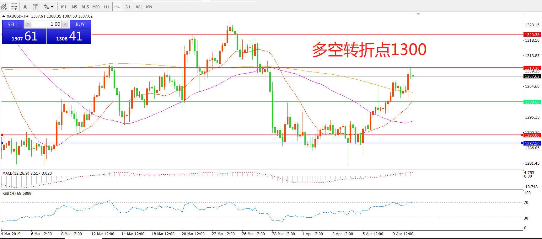 交易策略:在1300.00之上看涨,目标1310.00   1320.00