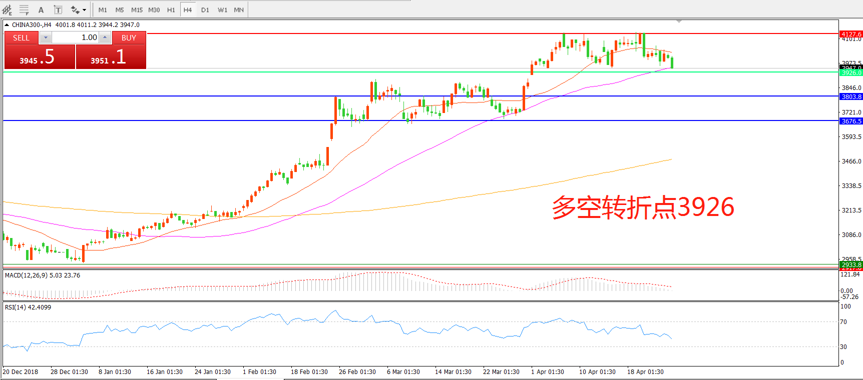 4小时图看,中华指数一路震荡下行,于55均线附近暂时企稳,MACD红柱减少,RSI指标向下,重点关注3926一线支撑力度。