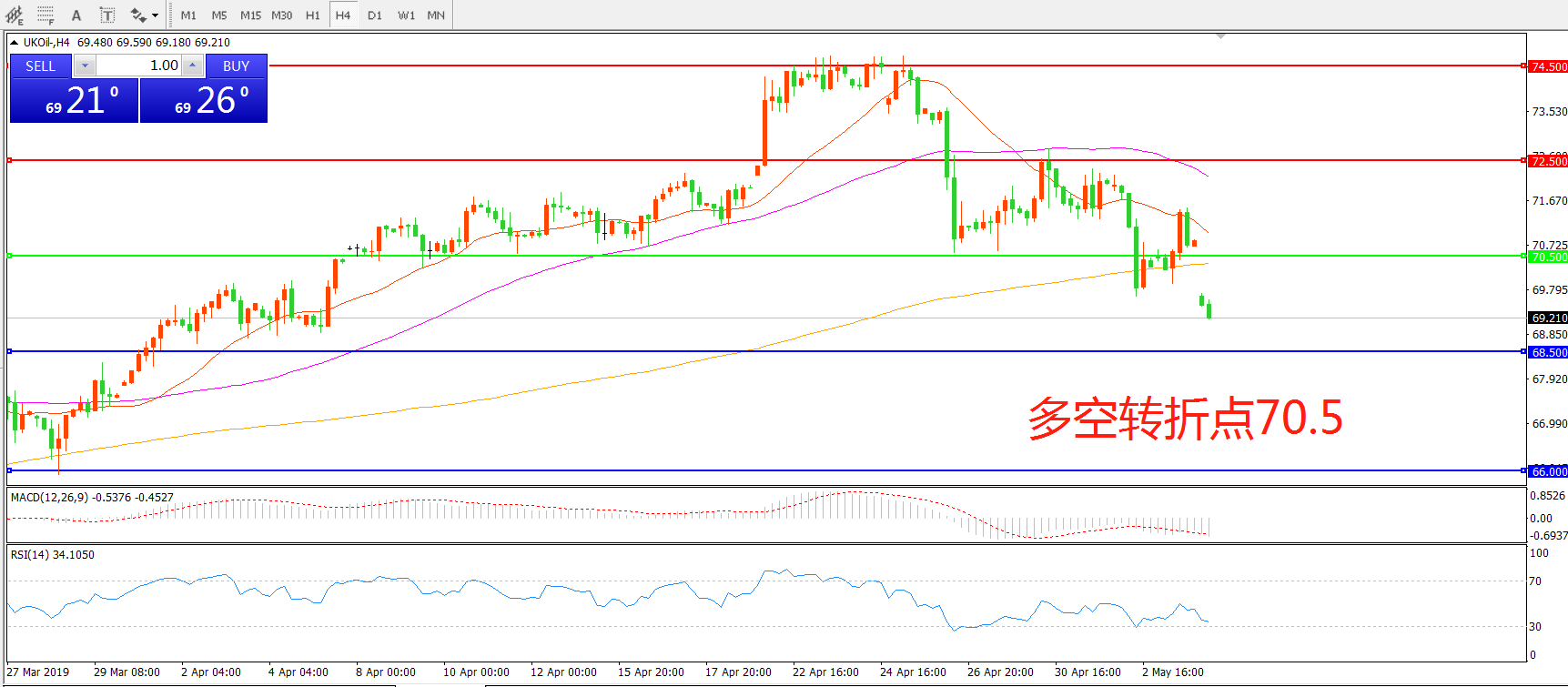 交易策略:在70.50 之下看跌,目标68.50 66.00