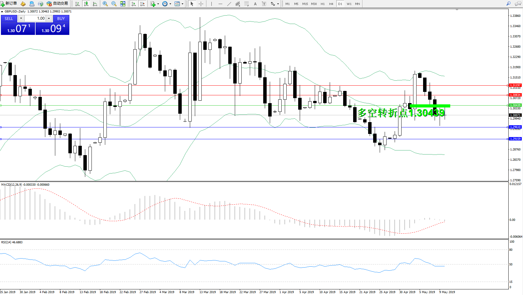 备选策略:1.30439上方看涨,目标1.30834、1.31197