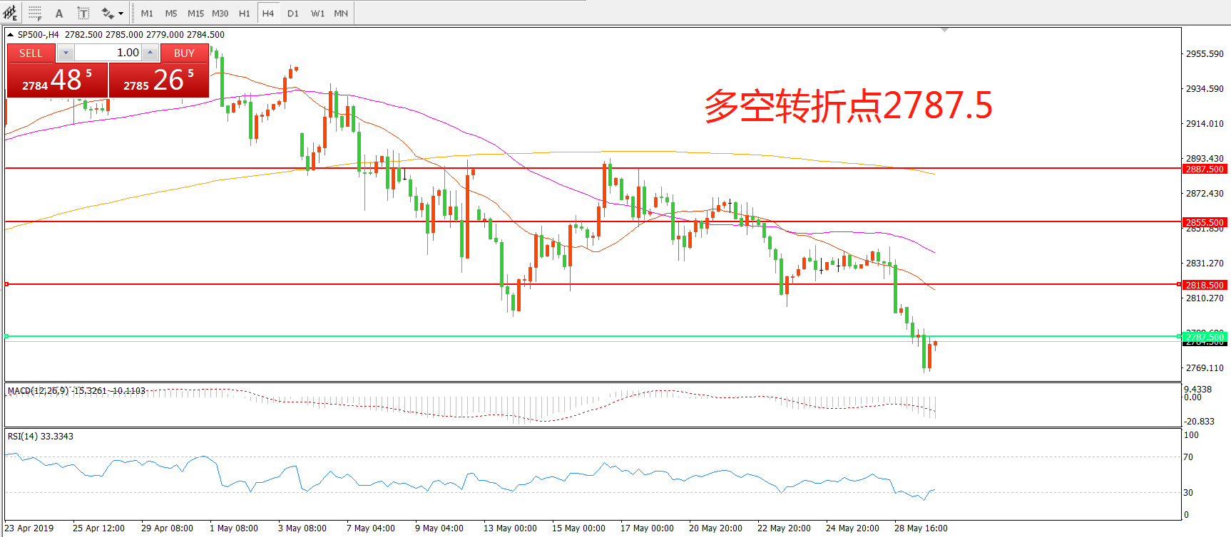 多空转折点:2787.50