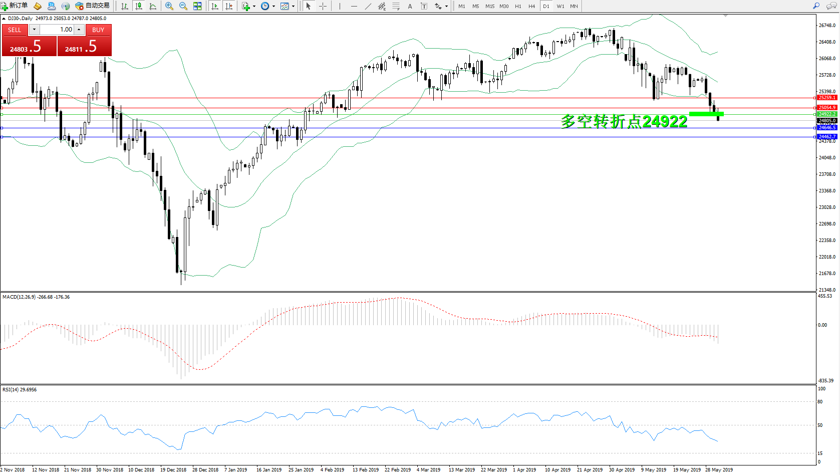 道琼斯指数DJ30—— 日K线图显示: