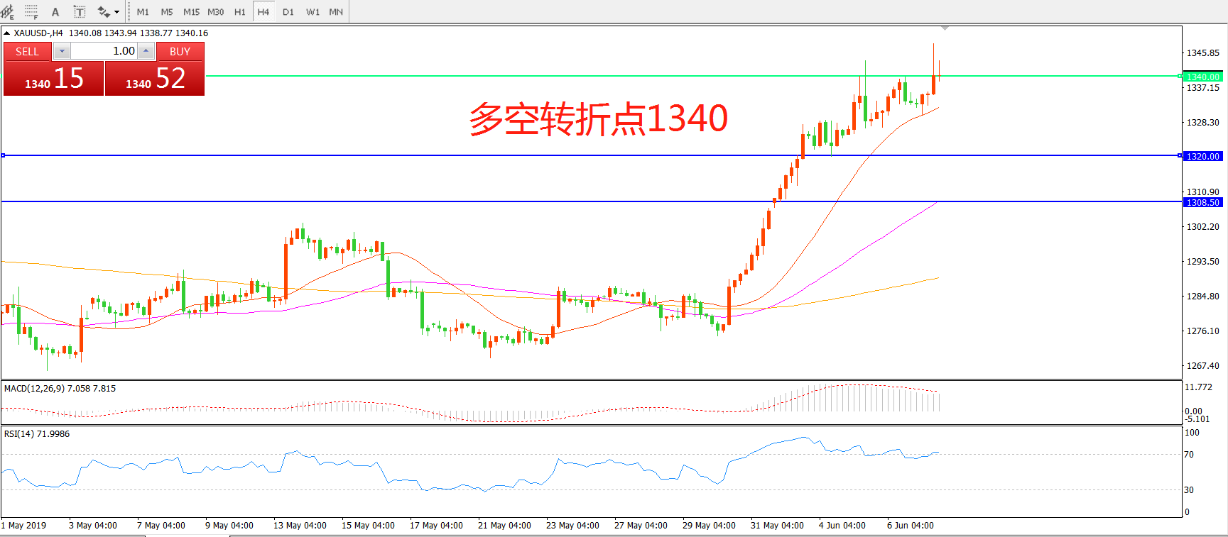 交易策略:在1340.00之上看涨,目标1354.00 1373.00