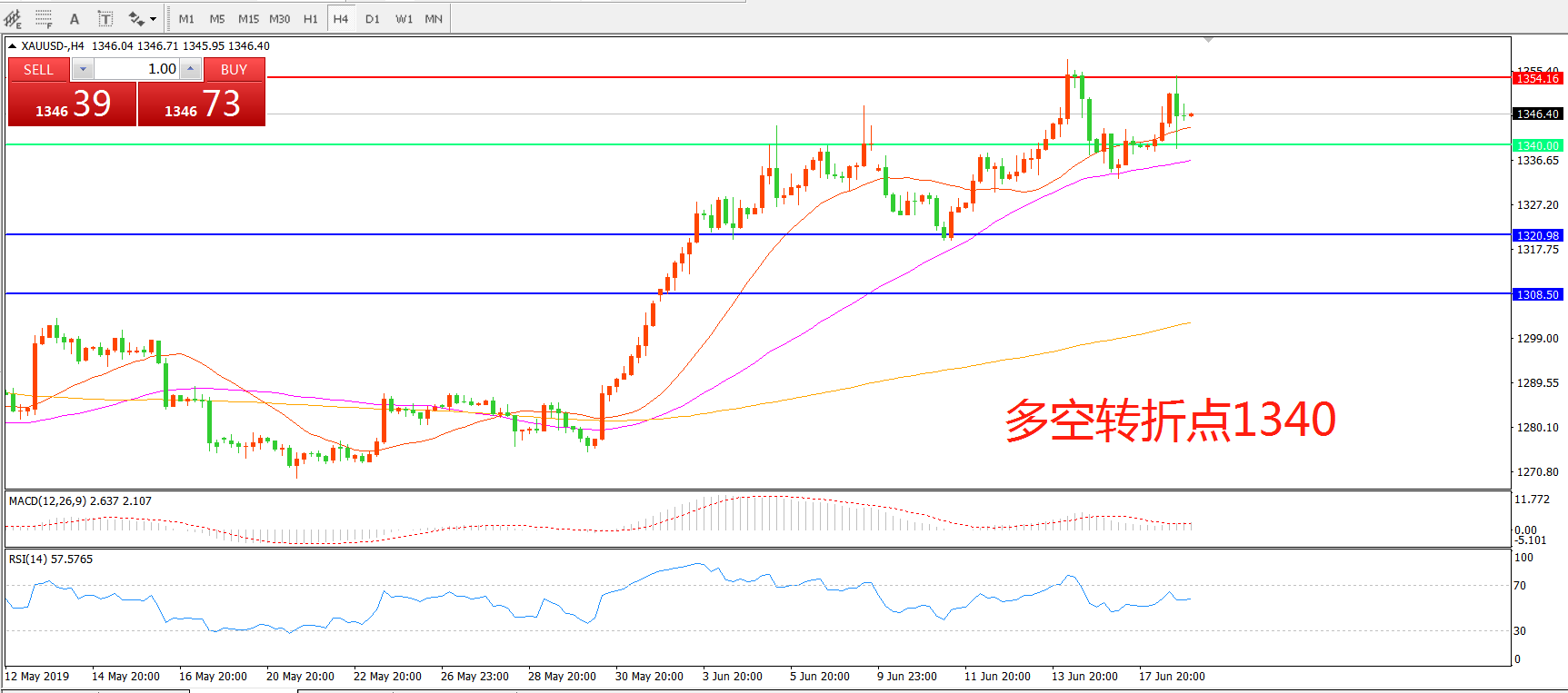 交易策略:在1340.00之上看涨,目标1354.00   1373.00