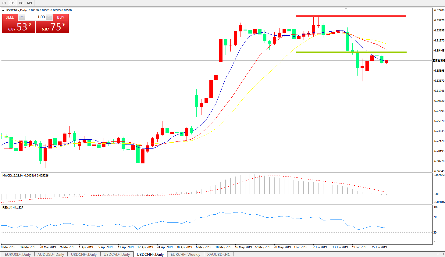备选策略: 在6.8880之上,看涨,目标价位为6.9600,然后为6.9800。