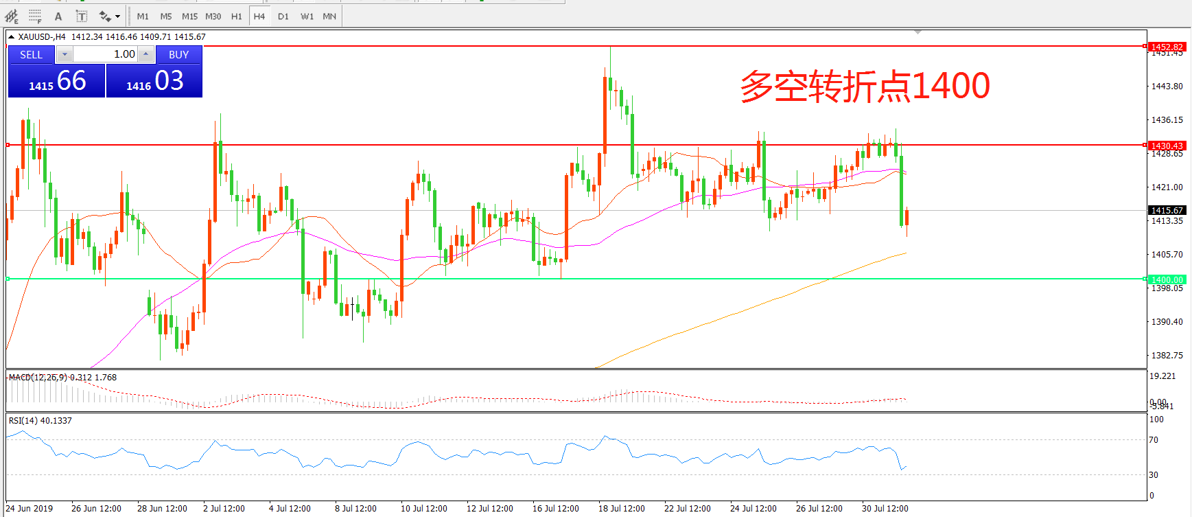 备选策略:在1400.00之下看跌,目标1373.00 1354.00