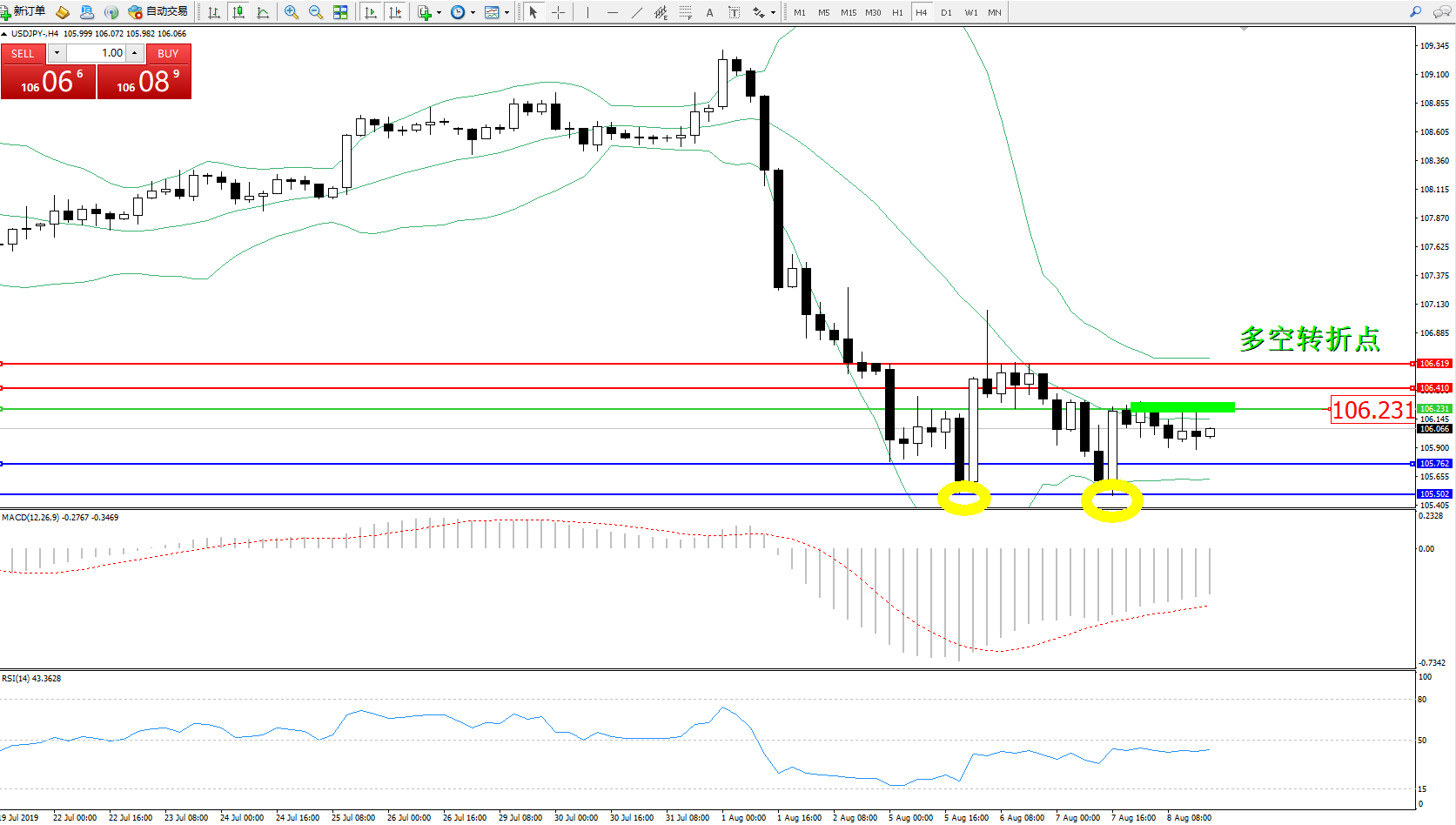 美日继续徘徊于106关口上方,尽管美元指数回升,但近期以来的下行趋势并未得到扭转,因市场仍存明显的避险需求。尽管日内早间中国方面发布的意外向好的7月贸易数据一度令市场宽心,但是投资者对全球市场的顾虑并未彻底打消,此外日本央行会否及时出手干预,将成为影响汇市的微妙因素。