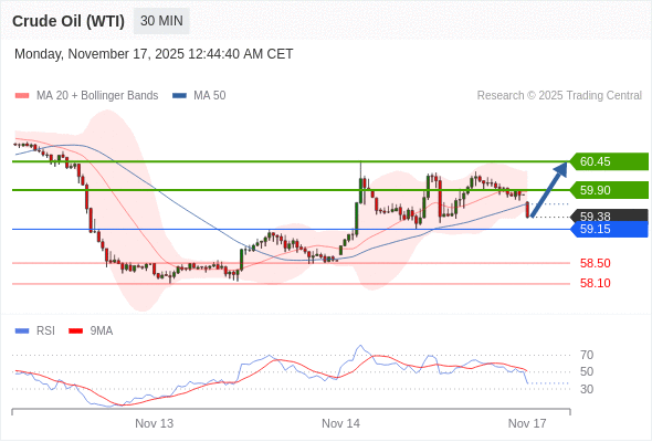 在 59.15 之上,看涨,目标价位为 59.90 ,然后为 60.45 。