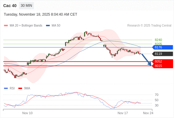 在 8176 之下,看跌,目标价位为 8052 ,然后为 8015 。