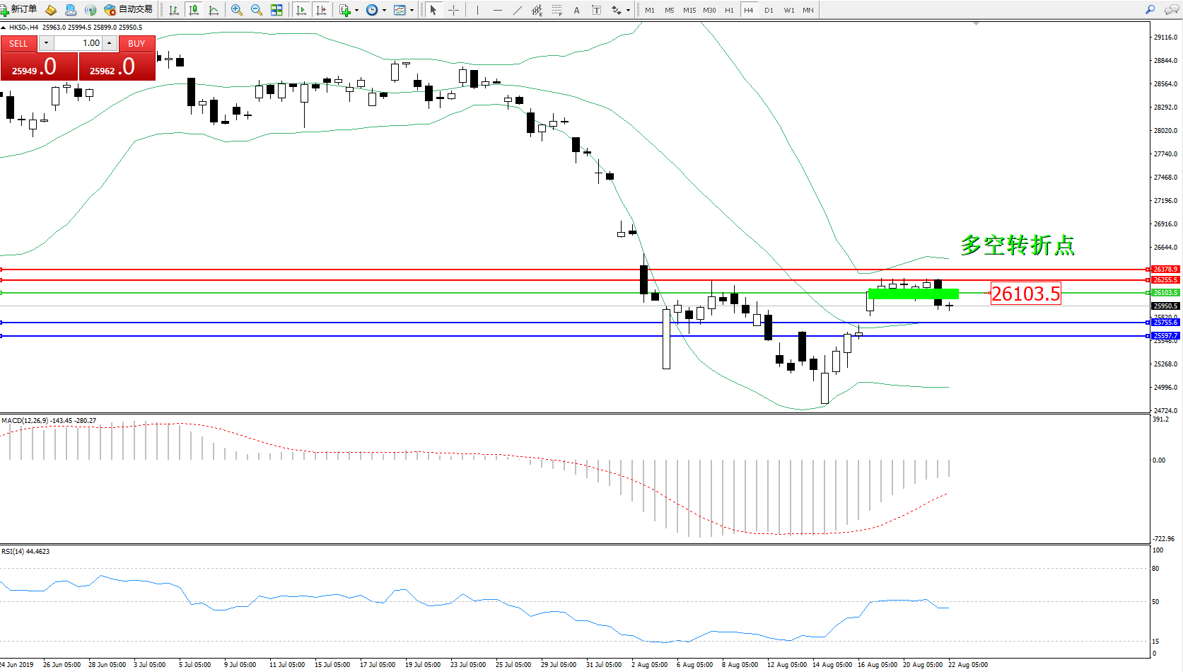 恒指HK50 ——4小时K线图显示: