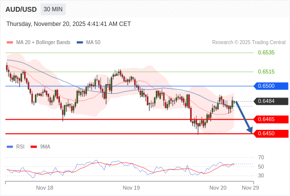 交易策略: 在 0.6500 之下,看跌,目标价位为 0.6465 ,然后为 0.6450 。