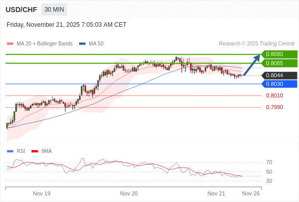 在 0.8030 之上,看涨,目标价位为 0.8065 ,然后为 0.8080 。
