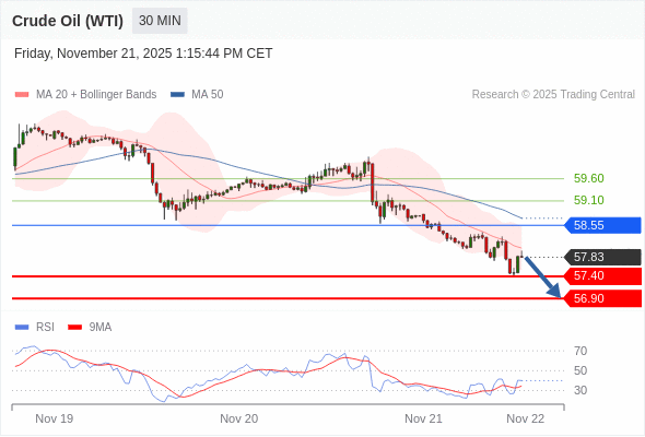 在 58.55 之下,看跌,目标价位为 57.40 ,然后为 56.90 。