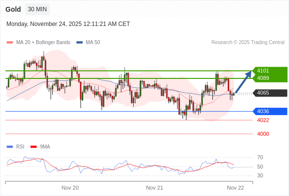 在 4036 之上,看涨,目标价位为 4089 ,然后为 4101 。