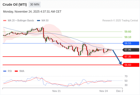 在 58.55 之下,看跌,目标价位为 57.35 ,然后为 56.60 。