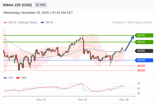 在 48530 之上,看涨,目标价位为 49410 ,然后为 49730 。