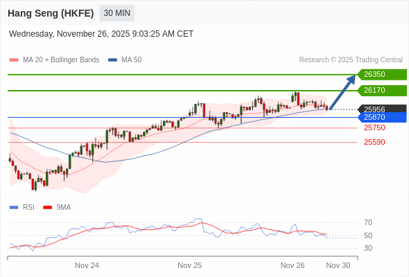 在 25870 之上,看涨,目标价位为 26170 ,然后为 26350 。