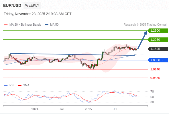 在 1.0800 之上,看涨,目标价位为 1.2260 ,然后为 1.2900 。
