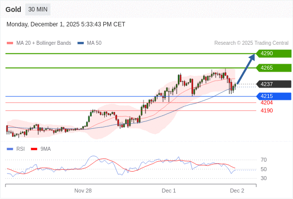 在 4215 之上,看涨,目标价位为 4265 ,然后为 4290 。