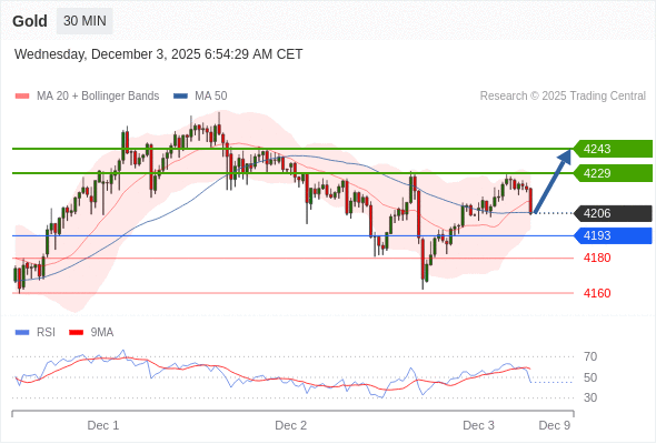 在 4193 之上,看涨,目标价位为 4229 ,然后为 4243 。