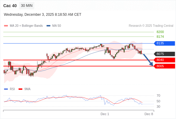 Cac 40 当日内: 短期关键阻力位在8135。