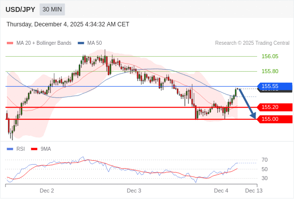 在 155.55 之下,看跌,目标价位为 155.20 ,然后为 155.00 。