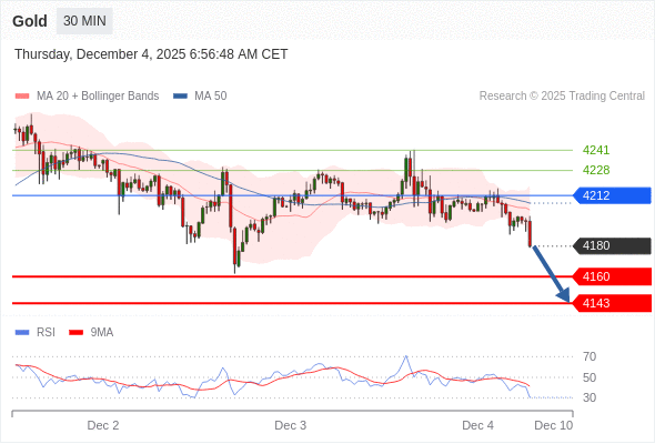 在 4212 之下,看跌,目标价位为 4160 ,然后为 4143 。