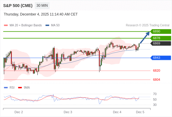 在 6843 之上,看涨,目标价位为 6878 ,然后为 6890 。