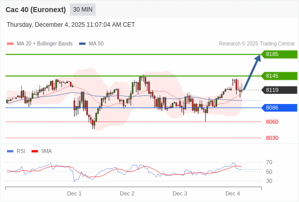 在 8086 之上,看涨,目标价位为 8145 ,然后为 8185 。