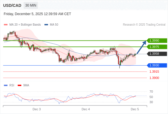 在 1.3930 之上,看涨,目标价位为 1.3975 ,然后为 1.3990 。