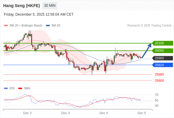 在 25810 之上,看涨,目标价位为 26000 ,然后为 26100 。