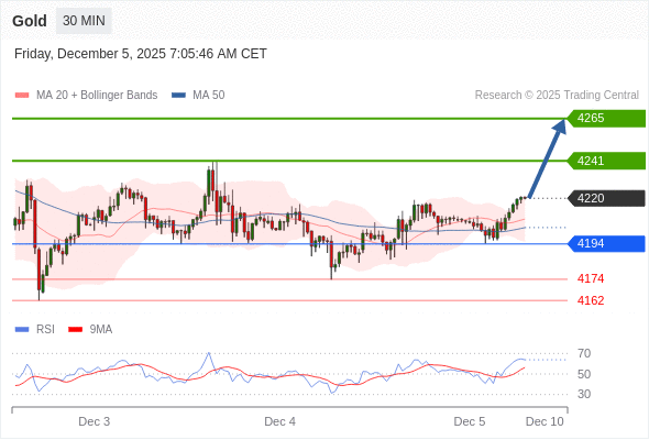 在 4194 之上,看涨,目标价位为 4241 ,然后为 4265 。
