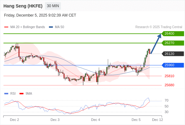 在 25960 之上,看涨,目标价位为 26270 ,然后为 26400 。