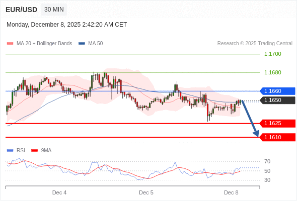 在 1.1660 之下,看跌,目标价位为 1.1625 ,然后为 1.1610 。