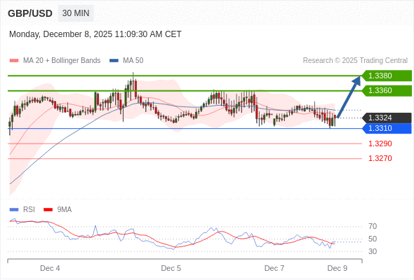 在 1.3310 之上,看涨,目标价位为 1.3360 ,然后为 1.3380 。