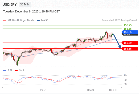 在 156.35 之下,看跌,目标价位为 155.70 ,然后为 155.35 。
