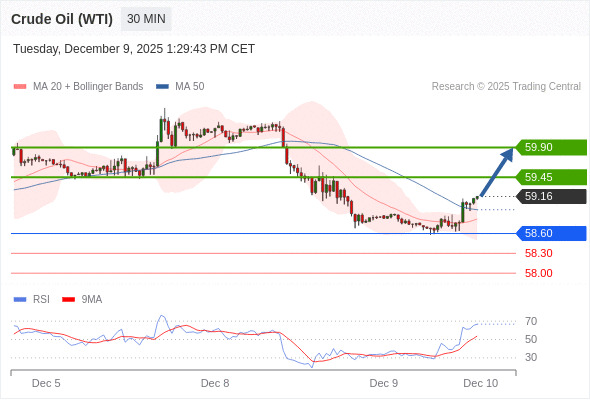 在 58.60 之上,看涨,目标价位为 59.45 ,然后为 59.90 。