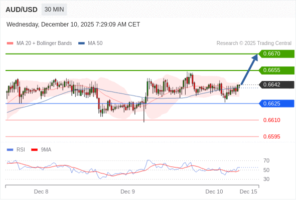 在 0.6625 之上,看涨,目标价位为 0.6655 ,然后为 0.6670 。