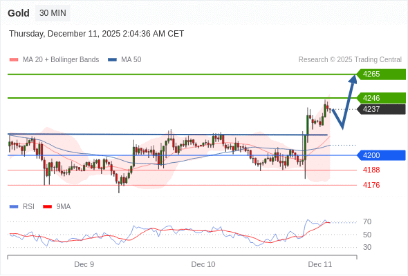 在 4200 之上,看涨,目标价位为 4246 ,然后为 4265 。