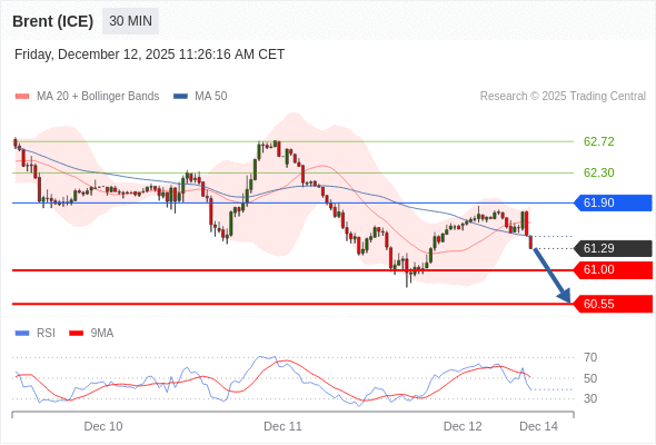 在 61.90 之下,看跌,目标价位为 61.00 ,然后为 60.55 。