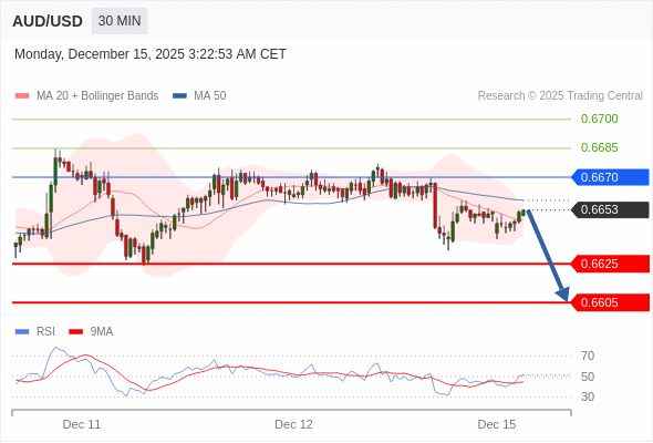 在 0.6670 之下,看跌,目标价位为 0.6625 ,然后为 0.6605 。
