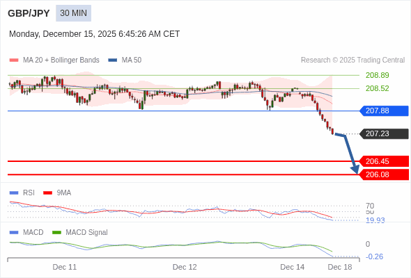 技术点评: RSI技术指标小于30。在这种情况下,说明有很强的下跌趋势,或者意味着处在超卖的状态下,可能会有向上的反弹。我们将观察RSI技术指标是否出现背离现象。 MACD技术指标处在其信号线之下看空。 配置为负。 此外,价位低于其20天及50天移动平均线 ( 分别位于208.08 和208.29 )。 最后,价位跌破其布林线通道下轨 (位于207.24。