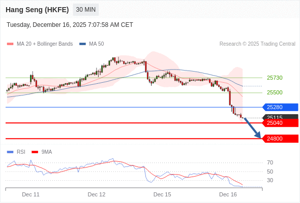交易策略: 在 25280 之下,看跌,目标价位为 25040 ,然后为 24800 。