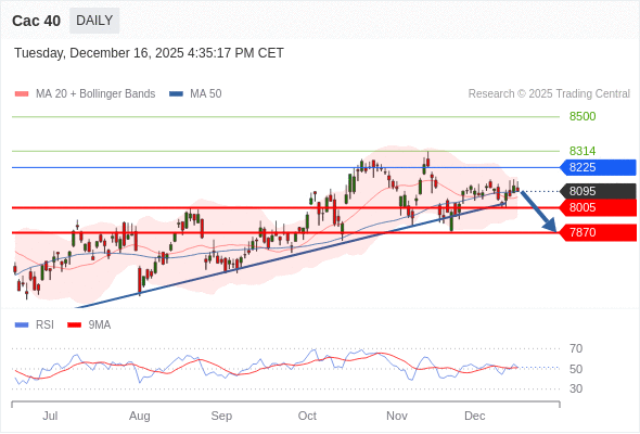 Cac 40 短线: 没有明显变化趋势。