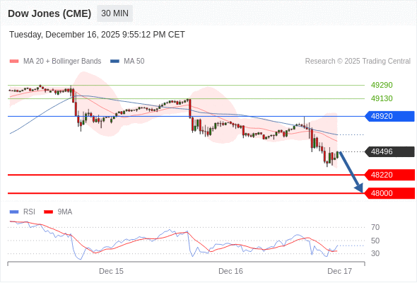 在 48920 之下,看跌,目标价位为 48220 ,然后为 48000 。