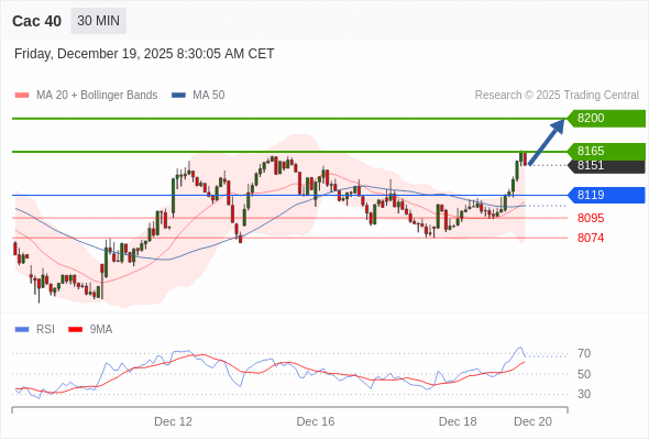 在 8119 之上,看涨,目标价位为 8165 ,然后为 8200 。