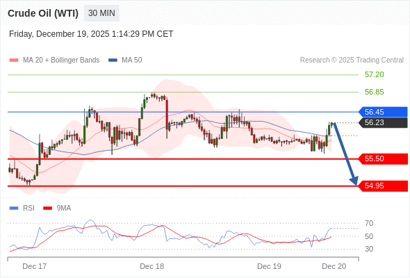 在 56.45 之下,看跌,目标价位为 55.50 ,然后为 54.95 。