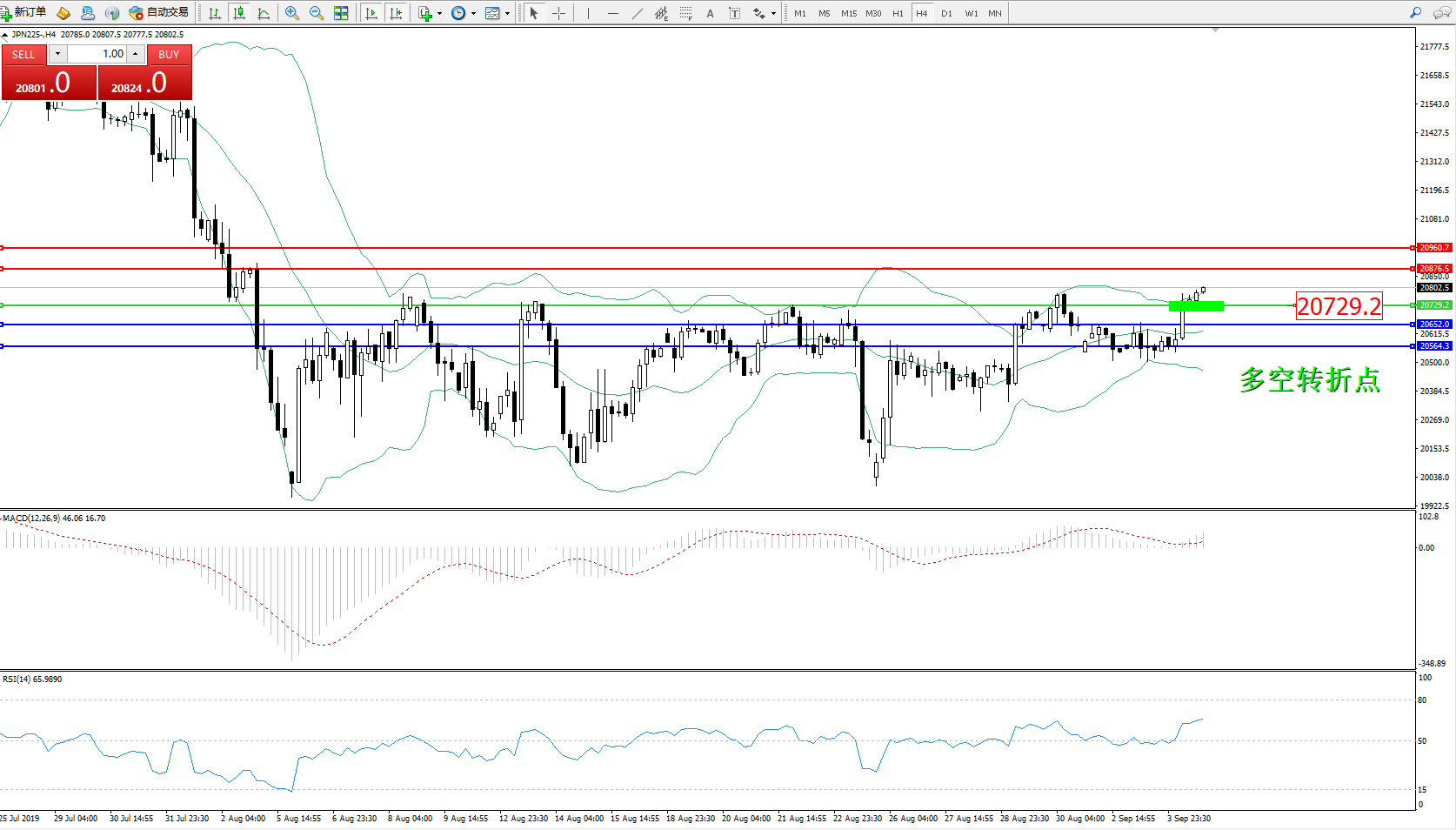 日经225指数9月4日(周三)收盘上涨33.34点,涨幅0.16%,报20658.50点。政府债券收益率正跌破日本央行目标区间的下限,日元正徘徊在企业“舒适区”的极限,通胀再次走弱。摩根士丹利经济学家认为,如果日本央行采取行动,它最有可能采取的举措之一是下调短期负利率。菅野认为,黑田东彦更有可能采取两阶段的宽松政策。这位前日本央行经济学家预计,日本央行本月将宣布另一项全面评估,并在10月份配合政府的财政刺激计划推出刺激计划。